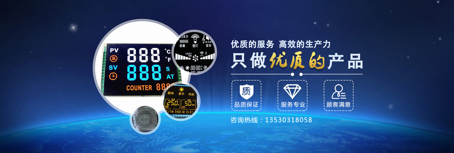 集研發(fā)、生產(chǎn)、銷售于一體,擁有先進(jìn)的成套生產(chǎn)機(jī)器及測試設(shè)備,可為客戶提供各類字符型、中文字庫、圖形點(diǎn)陣、TFT、COG液晶模塊等上千種顯示屏,并提供個(gè)性化的定制解決方案。